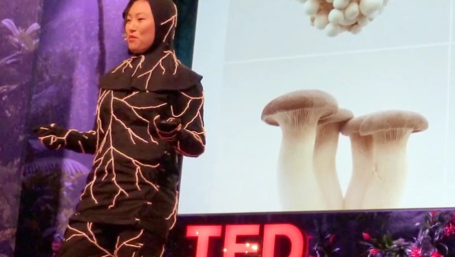 Jae Rhim Lee se puso una versión anterior del traje en una charla TED en 2011, en la cual explicó la investigación detrás de este invento.