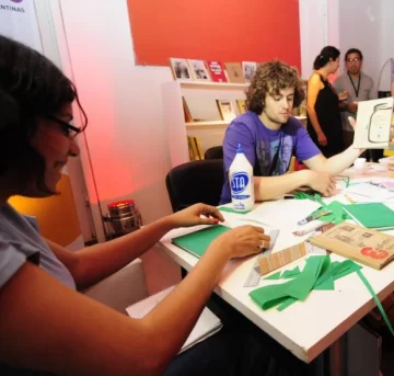 Los destacados fueron de Editorial Funesiana y de la cooperativa Eloisa Cartonera. Más de 50 personas participaron y aprendieron técnicas de cómo editar y producir sus propios libros de manera artesanal, económica y colectiva. Aprovechando los materiales reciclables y muy fáciles de adquirir, se pudieron encuadernar a mano las obras que uno quisiera. Las herramientas tradicionales de la escuela como el lápiz, la escuadra, la tijera, papel, plásticola, cartón y temperas fueron las más recurrentes a la hora de trabajar. Lucas Oliveira (Funesiana) y Santiago Vega junto a Mónica Gómez (Eloisa), enseñaron como encuadernar con cartón gris o corrugado. "Aplicamos la encuadernación con libros de poemas de Leonidas Escudero. Los imprimimos y cosemos con aguja, hilo y cartón. Es una manera de rescatar la bibliofilia, donde se pueden lograr proyectos editoriales económicos y rentables con calidad artesanal que no ve comúnmente", dijo el tallerista Oliveira. Y agregó: "hoy un libro nuevo cuesta entre 50 y 100 pesos, aquí nos sale 6 por cada obra, la diferencia está en producir más libros de la manera más fácil posible".