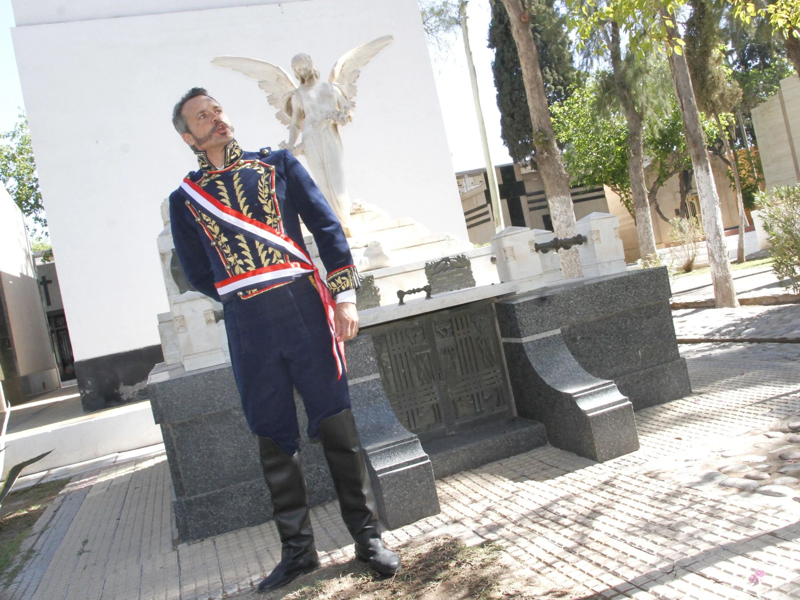 Por esta razón, para él fue un nuevo desafío ponerse en el traje de Benavides. "Esto fue a raíz del aniversario de la Batalla de Angaco, la más sangrienta del país que se llevó a cabo entre unitarios y federales", explicó Kuchen, quien para caracterizarlo, estudió y se empapó del contexto social en que vivió este militar y caudillo, exgobernador de la provincia, para poder recrearlo en los paseos organizados por el Municipio capitalino en el Cementerio.