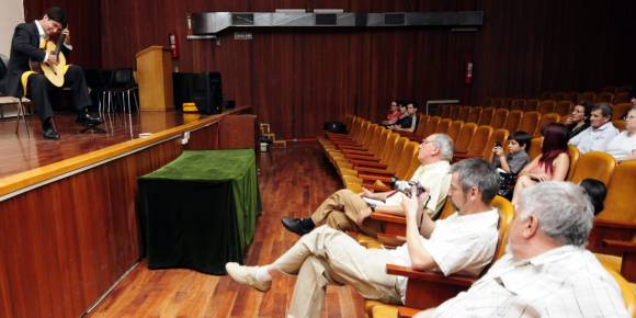 Concluyó el martes el 1er Festival de guitarra sudamericana y contemporánea que contó con la participación guitarristas de Estados Unidos, Chile y Córdoba. Organizado por el guitarrista Iván Amorós, la Fundación Aguaribay y la Secretaría de Extensión de la Facultad de Filosofía de la UNSJ, el encuentro tiene el objetivo de difundir las obras contemporáneas para guitarra de compositores sudamericanos, y es por eso que los invitados estrenaron aquí sus piezas. Durante los dos días que duró el festival, se presentaron en el Aula Magna de la Facultad de Filosofía, el Dúo dos Américas (EEUU), Sebastián Carrasco Mendoza (Chile), Luis Soria (Córdoba), y el anfitrión, Iván Amorós (foto), quien adelantó que por el balance positivo de esta primera edición, el año que viene repetirán la experiencia y ya confirmaron su presencia el guitarrista Jorge Luis Reales y el ensamble porteño Tiempos modernos.