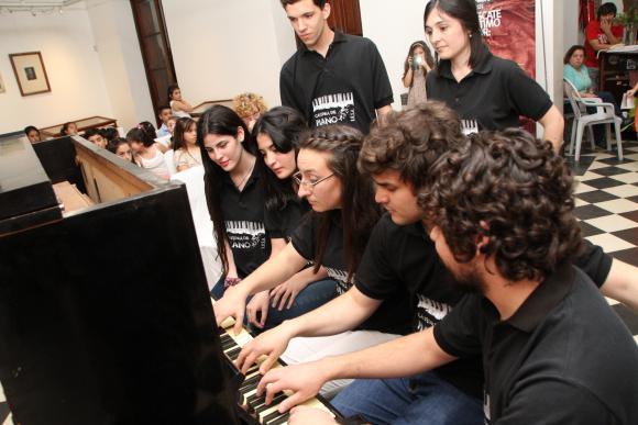 El público aplaudió con todo y acompañó el ritmo impuesto por la "Trisch-Trasch Polka". Una melodía alegre, festiva ejecutada por ¡Siete manos en el piano! Aunque parezca inverosímil, el ensamble juvenil "La Tecla Feliz" rompió la monotonía de la calurosa tarde sanjuanina ayer, en el Museo Gnecco. El grupo integrado por Ana Paula Oyola, Javier Villegas, Andrea Zanni, Juan Varela Graffigna, Mariana Garrotti, Giuliano Riccobelli e Ivanna Garrotti deslumbró al público con su interpretación de la mencionada opus 124 de Johann Strauss (con arreglo de Jonathan Scott) y "Desde el alma", (Beethoveniana, valzer quasi fantasia) de Rosita Melo y Homero Manzi. A un año de su creación, los chicos decidieron sumarse a los festejos del Día de la Música en el marco del II Ciclo "Pequeños Pianistas en el Museo".