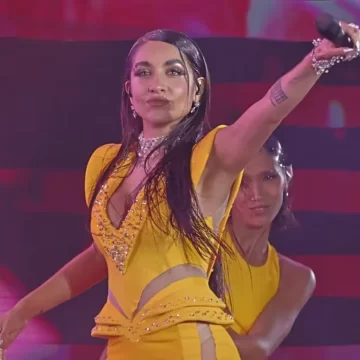 “Vamos a perrear furioso”, lanzó, ceñida en un conjunto de color amarillo, rodeada de bailarinas mientras interpretaba Dime como hago, uno de sus hits, haciendo que todo sea delirio entre su público.