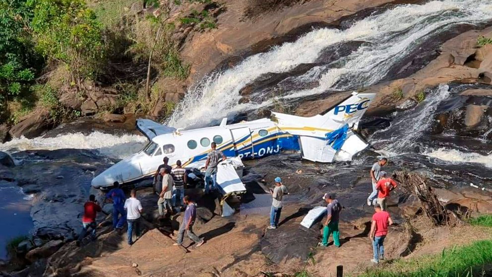 Según imágenes divulgadas en redes sociales, la avioneta, que tenía los papeles para volar al día -de acuerdo con las autoridades brasileñas- se estrelló cerca de una cascada de agua, en una zona de difícil acceso para los equipos de rescate. Las TV locales mostraron a bomberos trabajando para retirar los cuerpos del avión, que quedó encallado en un área rocosa junto a la cascada.