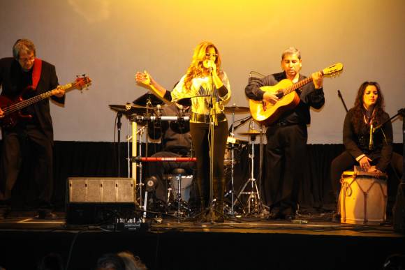 Anoche, el Teatro Municipal se vistió de gala, para recibir a artistas sanjuaninos que pusieron su canto para rendir homenaje al General José de San Martín. Giselle Aldeco, Juan Bustos, Ernestito Villavicencio, Los hermanos Videla y Los gajos de Pinono unieron sus talentos para dar vida al Canto Cuyano al Padre de la Patria. Buen repertorio y buenas voces que se llevaron los aplausos de la concurrencia, que desafiando el frío, calentó la noche con entusiasmo y sentimiento folclórico.