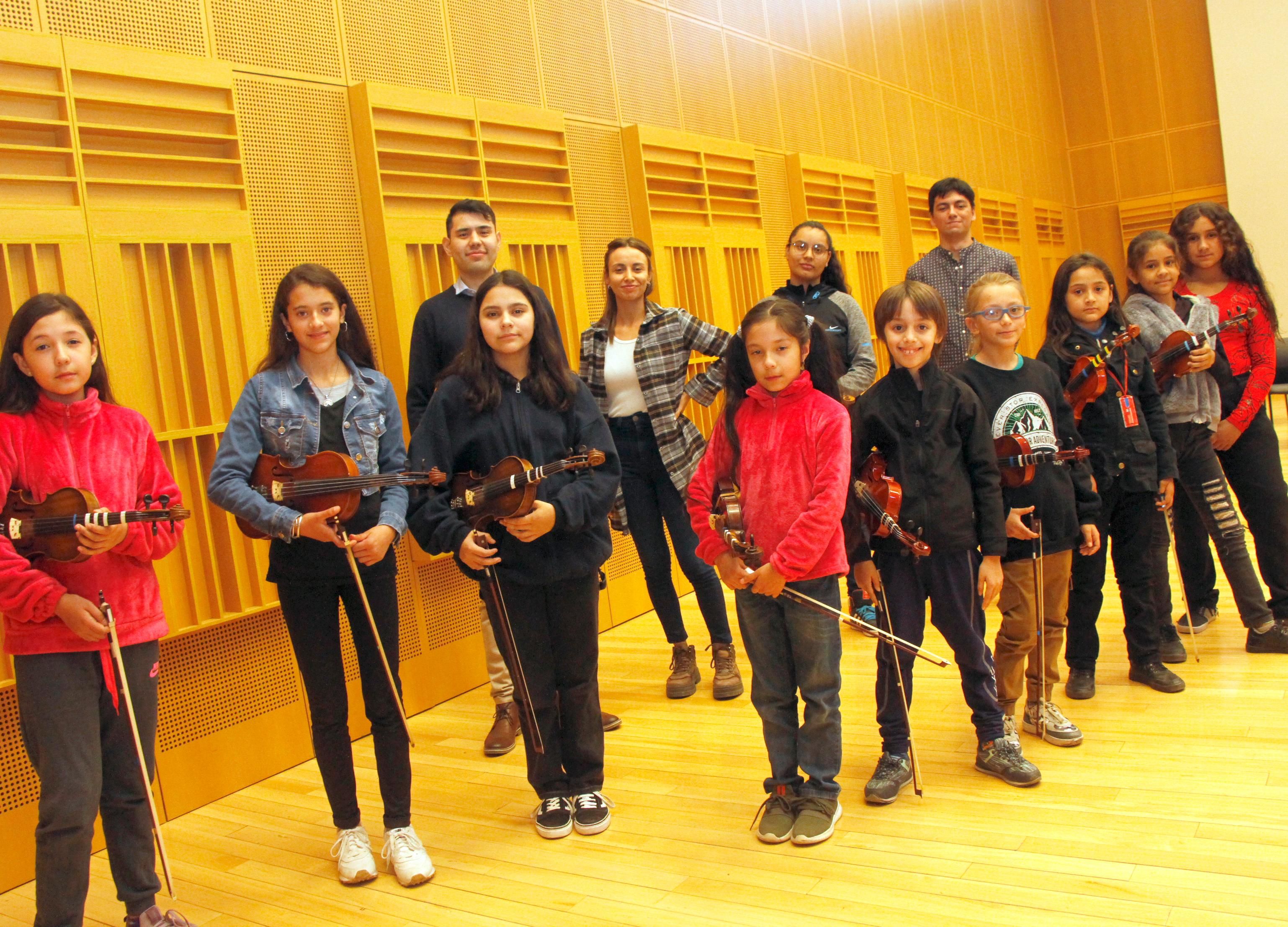 Cuando no están en clases en la Escuela de Música, los chicos y chicas practican en casa y también tienen las reuniones para ajustar lo necesario y estar listos para las funciones. En esta oportunidad, se pusieron de acuerdo para reunirse y compartir una foto grupal en una de las salas de prácticas del Teatro del Bicentenario. El clima de amistad es un factor importante, porque se apoyan mutuamente. Algunos de los más pequeños del grupo ya son compinches entre sí. Nicole Álvarez, quien junto a sus hermanas Alison y Azul, comparten un interés especial por tocar el violín. Se integraron al grupo rápidamente. ‘Al principio nos da nervios porque no queremos equivocarnos. Para que salga bien la obra, tenemos que leer el pentagrama y practicamos unas diez veces cada compás. El violín es el instrumento que más me gusta cuando suena. Mi abuela ponía en la radio al Chaqueño Palavecino y las chacareras con violines me gustaron tanto que eso me hizo entrar y quedé enganchada con esto’, dijo riéndose. Al escucharla, Balderrama sostuvo: ‘Queremos mantener estos valores y que estos chicos sigan teniendo chances de tocar, de formarse y que después puedan transmitirlo a sus pares. Aunque algunos en el futuro quizás se dediquen a otra carrera, esto hará que no dejen de ser músicos en su interior, porque la escuela es y siempre será un espacio para cultivar su talento’.