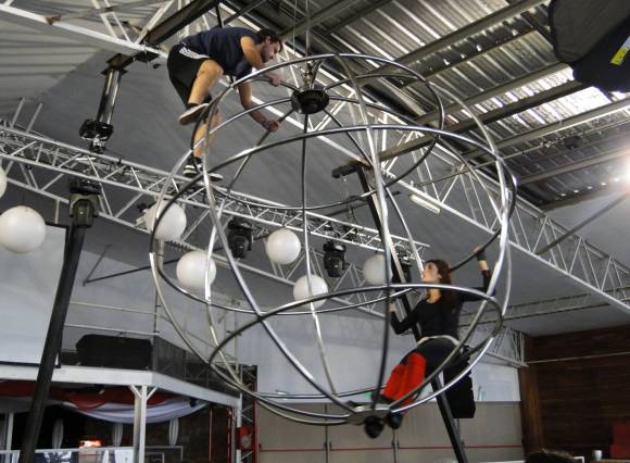 El coordinador operativo de la producción del programa, Edgardo "Pipo" Tomasini, explicó que junto con su equipo analizaron durante 15 días diferentes cálculos para "equilibrar el trabajo con un hierro que sea liviano pero lo suficientemente firme para soportar a las personas". Para tal fin, fue necesario contar con dos ingenieros, un herrero y un soldador que cuidara cada detalle. La estructura es una órbita construida con el mismo material que el caño del pole-dance, cromado al "espejo" y cuyo movimiento pendular depende de un rulemán que rota sobre su propio eje. Su tamaño es de 2,5 metros de diámetro cruzada por meridianos y paralelos. Pesa 200 kg sin personas y estará colgada a 1,80 metros de altura.