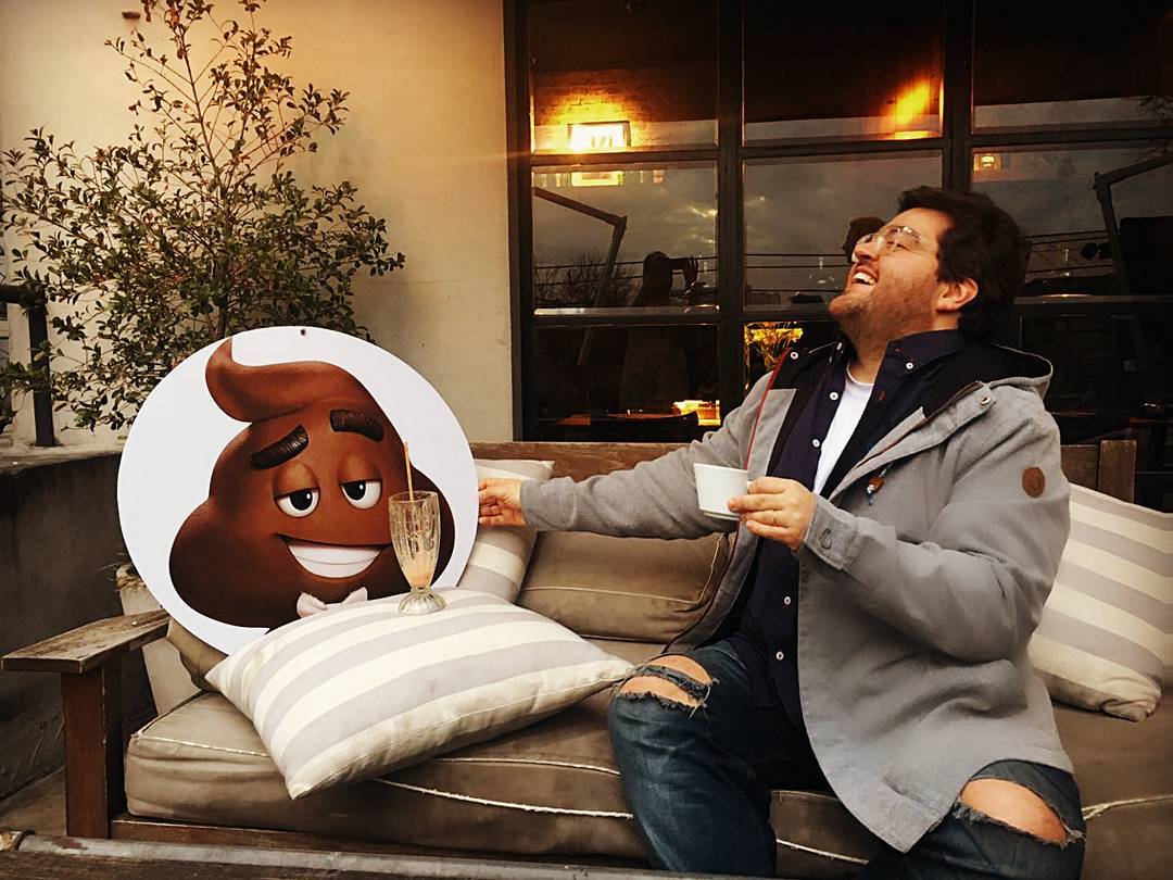 En "Emojis", la nueva cinta animada de Sony Pictures, el actor le pone la voz a "Popó", el emoticón de la caca que aparece en el celular y que acompaña a otros como "Hi-Five" (Choque los cinco) o "Gene" (emoji escéptico), protagonista del filme.La película narra la historia de "Gene", quien no puede mantener un solo gesto y pone en jaque la vida de la aplicación de emoticones dentro del celular de un adolescente, quien necesita del buen funcionamiento de su teléfono para interactuar con sus amigos.Dirigida por Tony Leondis, "Emojis" toca temas recurrentes de las películas animadas, como la fidelidad, la amistad y el amor, pero, también temas más modernos como la nueva era de la comunicación desatada por Whatsapp, Telegram y Facebook Messenger, entre otras aplicaciones.