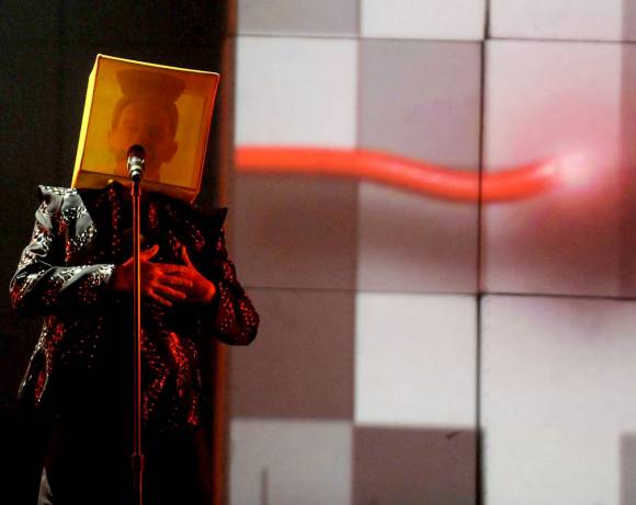 Así fueron pasando Heart, DYSMC y Pandemonium, mientras dos coristas con las cabezas tapadas por cubos, realizaban una coreografía robótica. A ellas se sumaron tres bailarines, más los encargados de escenario, completamente vestidos de blanco, que entre cada canción, movían los cubos armando la puesta para el otro tema, como ocurrió en Go West donde construyeron un podio olímpico.