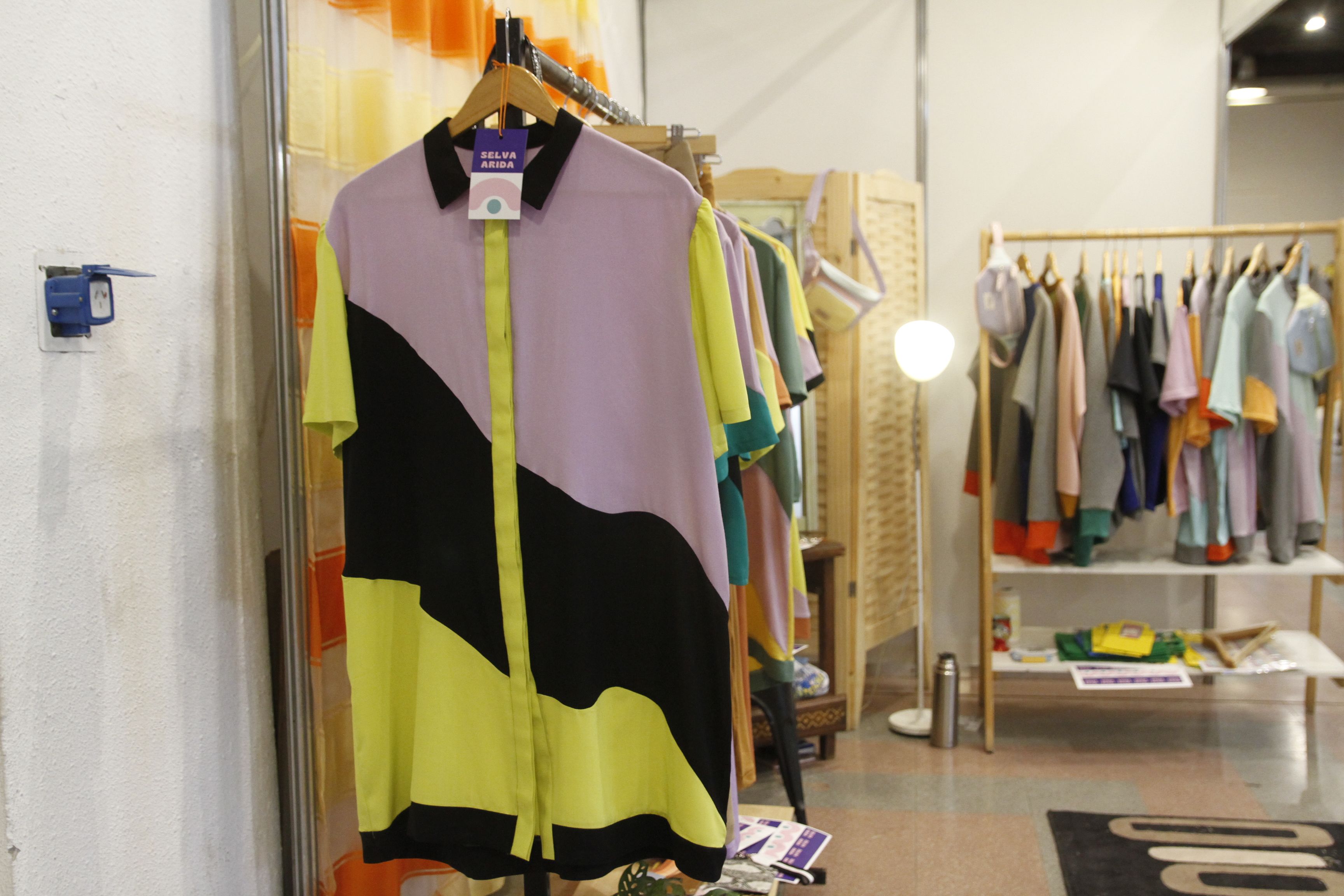 Selva Arída. Paola Fuentes ofrece paletas de colores y formas geométricas llamativas y amenas en sus estampados. Las combinaciones son infinitas e interesantes. Hay camisas, maxicamisas y remeras sin género. Esta prenda cuesta $4.500.