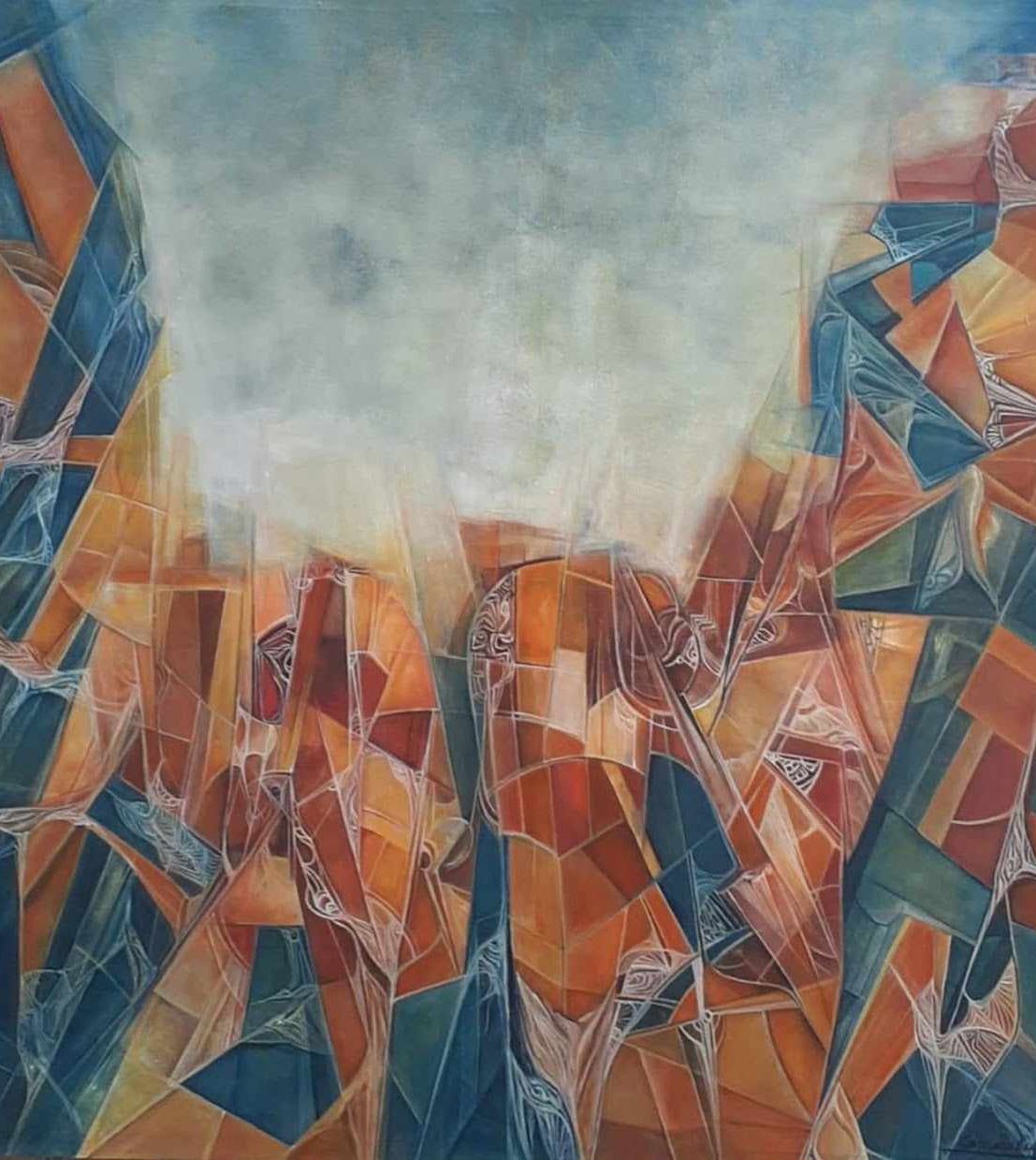 "Mis trabajos son pensamientos en imágenes, formas abstractas que referencian la naturaleza, lo lúdico, lo mágico, espacios imaginarios, donde aflora el inconsciente, ordenado posteriormente a través de la razón en composición y paleta", explicó la artista, que ha pasado de "lo figurativo a lo abstracto".