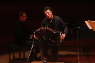 En su regreso a la tierra que lo cobijó nacer, Juan Pablo Jofré Romarión tuvo una intensa jornada con funciones, encuentros y presentaciones junto a su fiel compañero, el bandoneón. Primero fue su concierto en el auditorio Juan Victoria, de la Mano del Mozarteum San Juan brindando un gran espectáculo. Luego estuvo de visita por la Escuela Hogar donde también repartió su talento con los niños. Y ayer, se presentó en el Centro de Convenciones Libertadores de América (en Rawson) junto a la Orquesta Escuela dirigida por el maestro Antonio Cerón Ortega. Fue una gala sencilla pero luminosa para los numerosos asistentes que vivieron el recital. Con la presencia de autoridades del municipio de Rawson, sumando a los padres y familiares de la orquesta, el virtuoso músico trajo consigo mucha energía al ejecutar piezas de tango, propias y ajenas. Pero además, con un sentido interactivo, brindó un show interesante y didáctico para el público, narrando entre las melodías la historia del bandoneón. Entre las piezas destacadas en el repertorio de ayer por la tarde, el bandoneonista ejecutó Dulces sueños, Bandoneón y junto a la orquesta dieron Tango arco iris. Por su parte, la formación juvenil a cargo de Cerón Ortega, interpretó Pentarock y Rock de la Avenida Vergara.