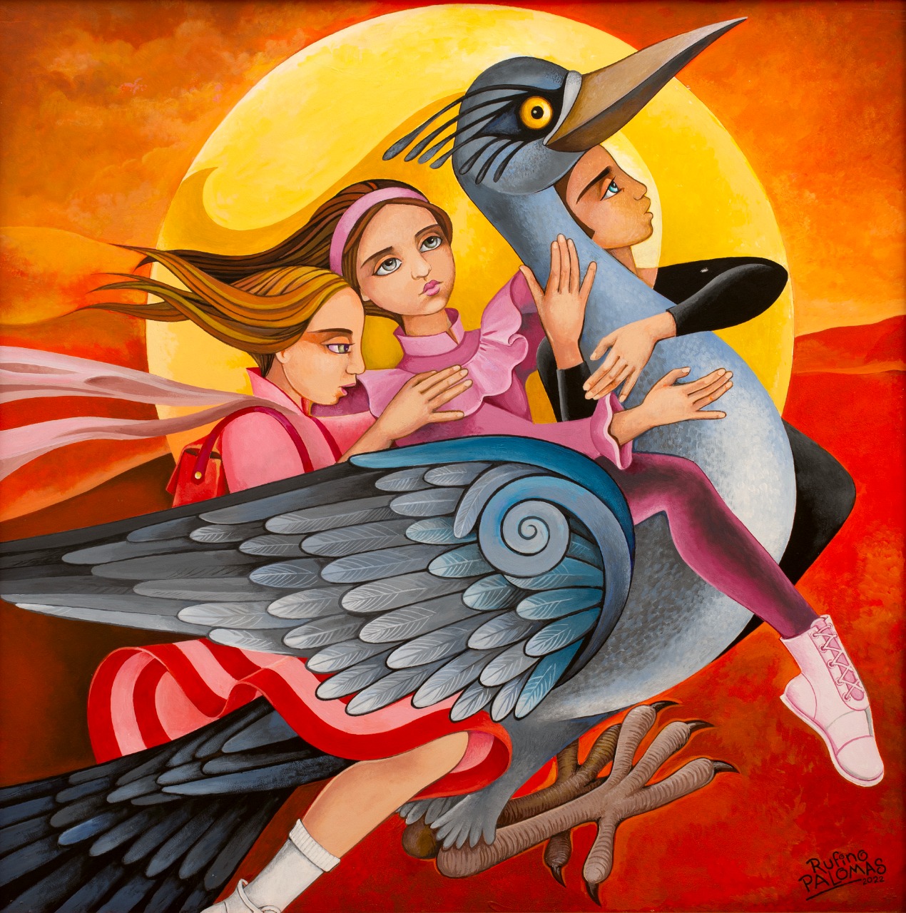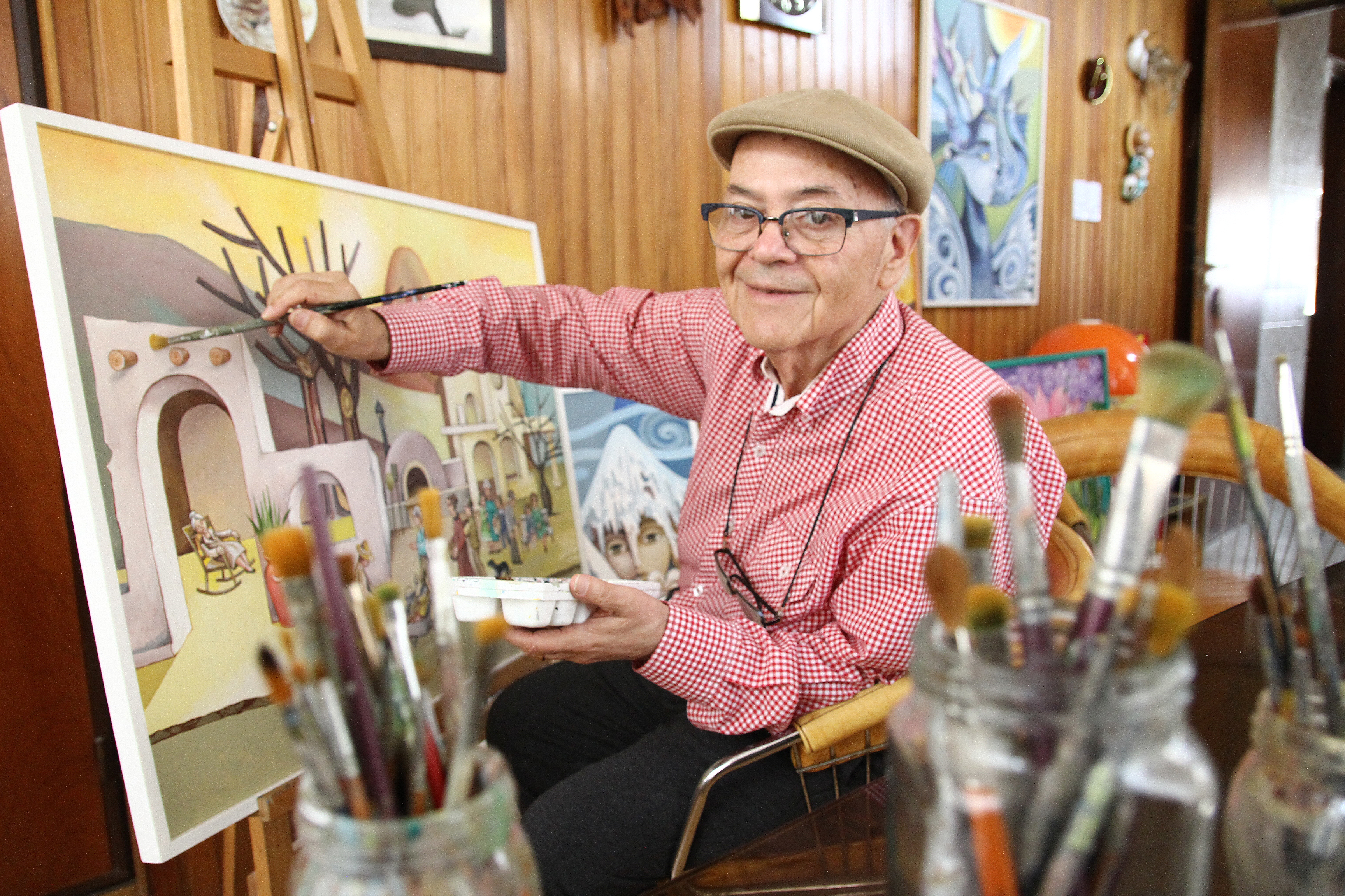 Algunos lo recordarán por los maravillosos carruajes que se lucieron en fiestas como la del Sol y los carnavales. Otros, como el gran escenógrafo y utilero que trabajó con reconocidos bailarines y teatreros de la vieja guardia, con institutos de danzas y teatro; y también para programas de TV. No faltarán quienes no olvidaron su vocación docente. Y para los que peinan algunas canitas más, será imposible no señalarlo como el dibujante publicitario que se destacó en la agencia de Reynaldo Mattar y luego en su propio atelier publicitario, produciendo tanto para San Juan como para Mendoza, en épocas donde los avisos comerciales se ilustraban a mano. Pero antes de eso, y durante, Rufino Palomas tuvo otro amor, su verdadero y gran amor: la pintura. Estudió de modo particular con Federico Blanco y luego en la UNSJ, donde recuerda que sus profesores Leonor Rigau de Carrieri y Luis Quesada le preguntaban si realmente necesitaba trabajar, porque consideraban que tenía un gran futuro y la publicidad le iba a quitar tiempo. Pero él estaba entusiasmado y, cosas de la vida, dejó la facultad en el último año y tomó otros caminos. Allí quedaron los caballetes y bastidores, tapados de impecables dibujos publicitarios (se llevaba bolsas de productos a su casa para ilustrarlos), hermosas máscaras e impactantes muñecos de cartapesta que generaciones aplaudieron en las distintas celebraciones populares. Postergados, pero nunca olvidados. La introspección a la que a varios llevó la pandemia, especialmente en los dos primeros años de aislamiento cuando casi todas las actividades quedaron suspendidas, lo hizo reencontrarse con ellos. Y, de alguna forma, también consigo mismo. Como un impulso vital, Palomas volvió a tomar los pinceles y a llenar blancos con colorida creatividad. Fruto de ese proceso es su retorno al ruedo como "pintor de cuadros", que quedará a la vista de todos el domingo próximo, cuando inaugurará su exposición de la mano de la comuna de Albardón a través de su Dirección de Turismo y Cultura, que alentó y colaboró para llevar a cabo la muestra.
