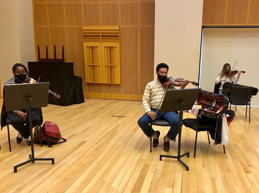 La Camerata San Juan, exitosa agrupación local que desde hace varios años es favorita del público, volvió al trabajo de manera presencial. Luego de varias salidas vía streaming y por separado, a raíz de la pandemia, el grupo volvió a ensayar de manera presencial en el Teatro del Bicentenario. Se trata de una versión reducida, ya que -al igual que sucede con la Sinfónica de la UNSJ- la fila de los vientos aún no está autorizada a volver.