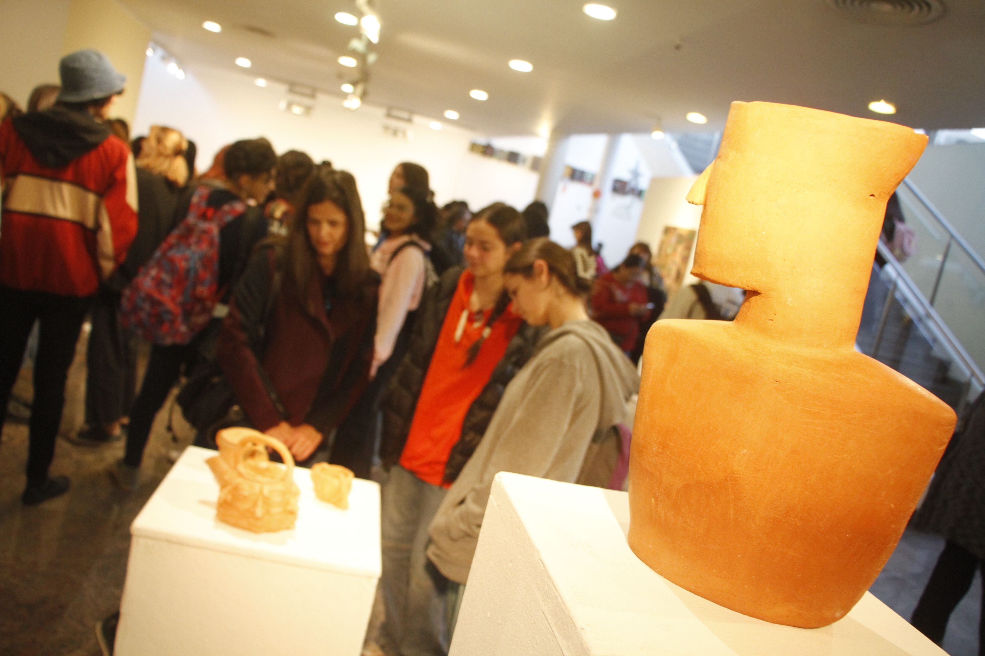 Ayer en el Museo Franklin Rawson, la escultura, como disciplina, sumó un nuevo capítulo en la difusión de la obra de uno de los consagrados como Miguel Ángel Sugo y el inicio de un camino para los nuevos artistas. Fue con la realización del Seminario Regional de Escultura y con la muestra "La escultura como experiencia". La exposición -que podrá visitarse hasta fin de mes- reunió por primera vez en ese espacio cultural a estudiantes de distintos niveles de formación de Talleres de Cerámica y Escultura del Departamento de Artes Visuales de la FFHA, del Central Universitario Mariano Moreno y del Centro Polivalente de Arte. Una marea sub-20 copó el subsuelo del museo. Adolescentes y jóvenes estaban visiblemente contentos y orgullosos de ver sus obras en este contexto; en un montaje profesional, que además por decisión curatorial no se distinguió procedencia, sino que las 55 piezas se instalaron agrupadas por criterios similares, ya fuera por materiales, tamaños o técnicas, pero no instituciones. "Todos los alumnos están integrados en la exhibición , no se podrá identificar cuál tiene mayor o menor formación en la producción, porque los trabajos, de verdad, tiene muy buena calidad", aseguró Emanuel Díaz Ruiz, director del MPBAFR.