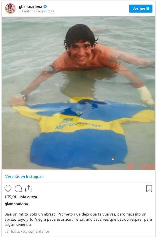 Desde que Diego Maradona falleció el pasado 25 de noviembre, sus hijas no dejaron de compartir ciento de historias compartidas con su papá. Este lunes fue Gianinna la que subió una foto del "Diez" y dejó un conmovedor mensaje.