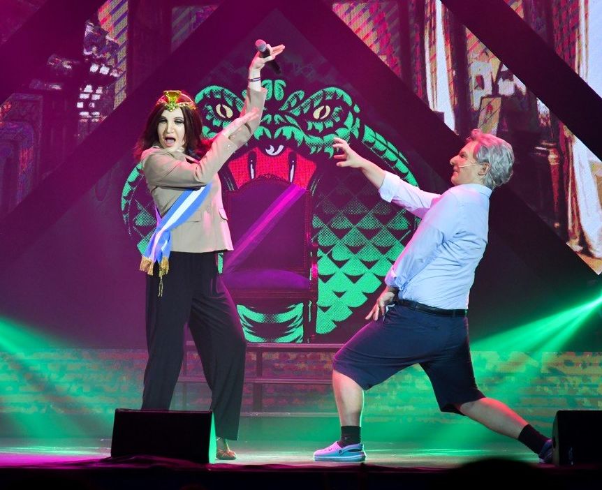 Entradas $1.500 a $650. El único candidato que cumple su promesa, disfrutar sin crisis ni recesión. Con su asesor Eial y su gabinete musical: "La Valentín Gómez". Un espectáculo que permaneció en el podio de las ventas durante todo el año en la calle Corrientes, y que ahora el cómico trasladó a "La Feliz".