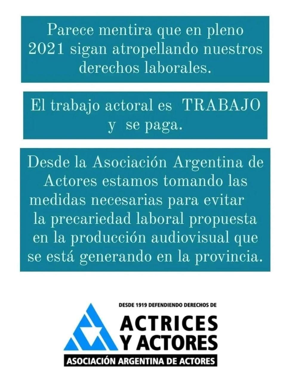 En principio, se cierra así este capítulo que movilizó al ambiente de la interpretación actoral sanjuanino y volvió a poner en el tapete su lucha por los derechos conquistados respecto a que el trabajo artístico se paga, tal como resaltaron.