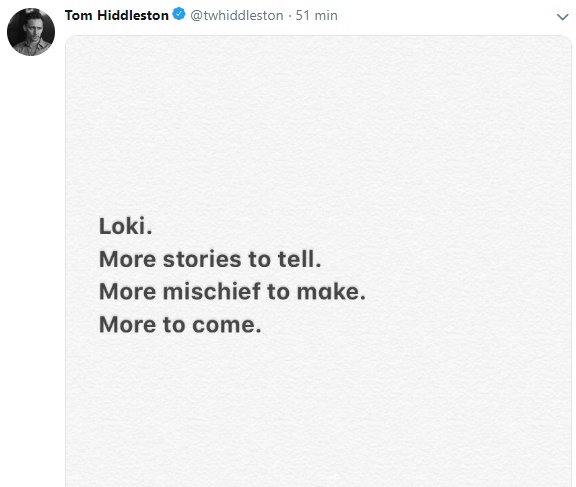 Recordemos que el actor le dio vida al antihéroe en diversas películas del universo tales como "Thor" (2011), "Avengers" (2012), "Thor: un mundo oscuro" (2013), "Thor Ragnarok" (2017) y "Avengers: Infinity War" (2018).