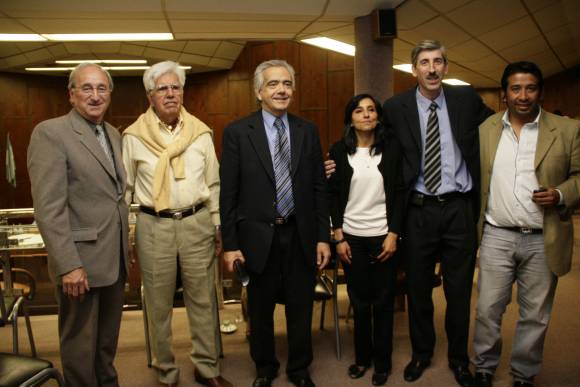 En la foto, de izq. a der.: el diputado Rolando Cámpora, Juan León Roldán Moreno (quien propuso el nombre que la radio lleva desde el 11 de septiembre de 1962), Emilio Ventura, Patricia Moreno, el presidente del bloque oficialista Víctor Doña y Juan Pereyra.