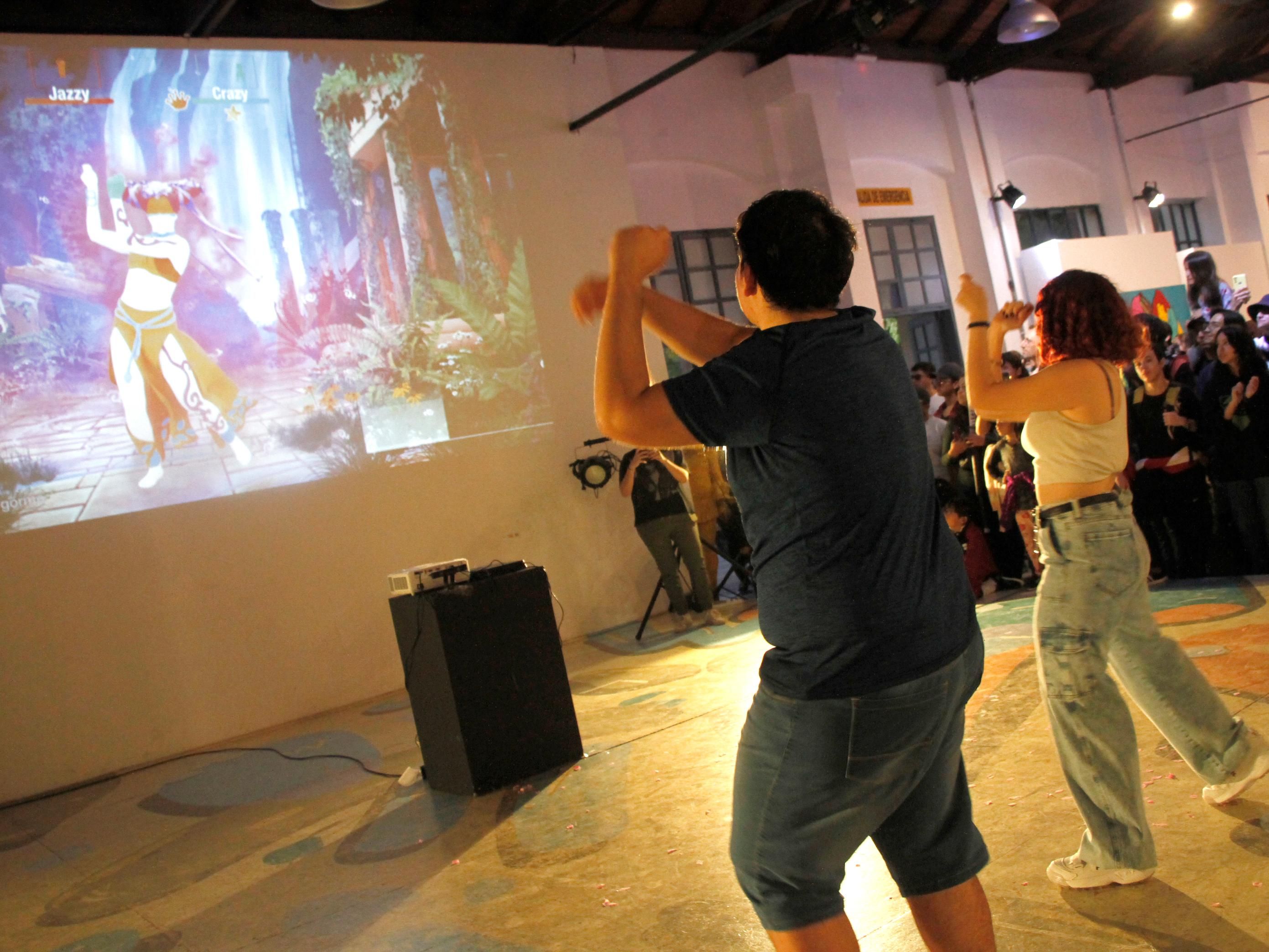 Con el paso justo. Los participantes medían sus habilidades físicas en el Just Dance. Bailar y con sincronización son claves para quedarse con el premio mayor.