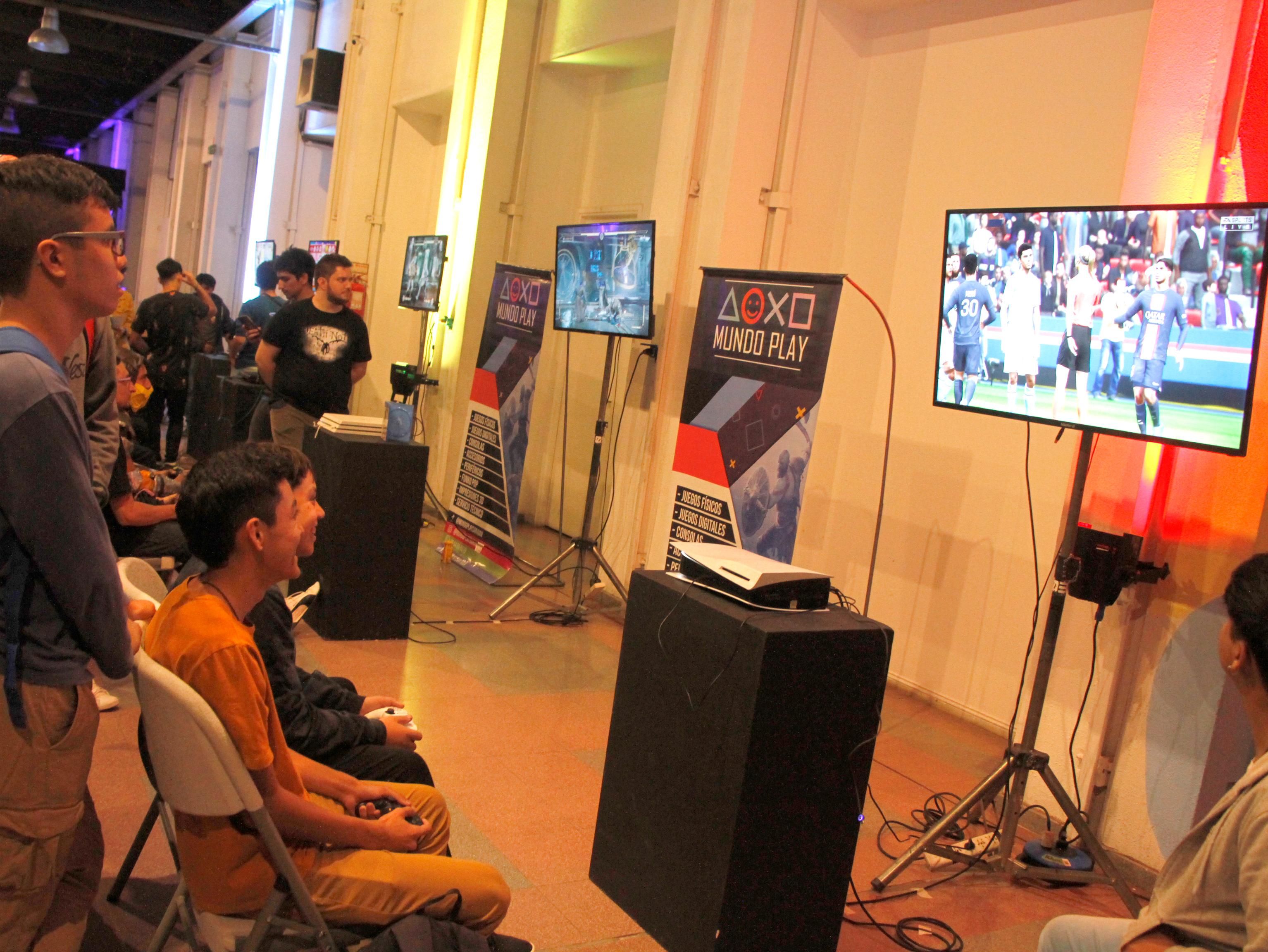 Los futboleros en su juego. Chicos, jóvenes y adultos pasaron la tarde en el simulador deportivo FIFA 23 en la Play 5.