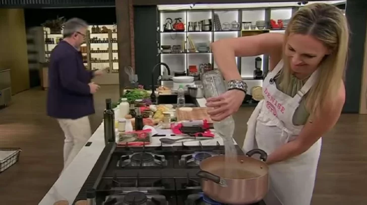 “La pasta es 1, 10 y 100: un litro de agua, 10 gramos de sal y 100 gram…. ¡Agua fría!”, exclamó mientras miraba cómo la conductora le agregaba un litro de agua fría a la preparación que ya estaba sobre la hornalla.