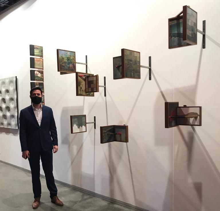 El director del Franklin Rawson, Emanuel Díaz Ruiz, en el "pre opening de ArteBA, junto a la nueva adquisición del Museo.
