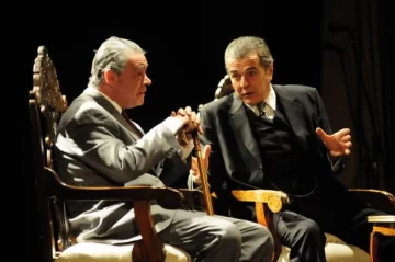 Un viejo escritorio y dos sillones junto a una mesita sirven de escenografía para la recreación de Borges y Perón, obra que se presentó anoche en un Teatro Sarmiento prácticamente colmado.