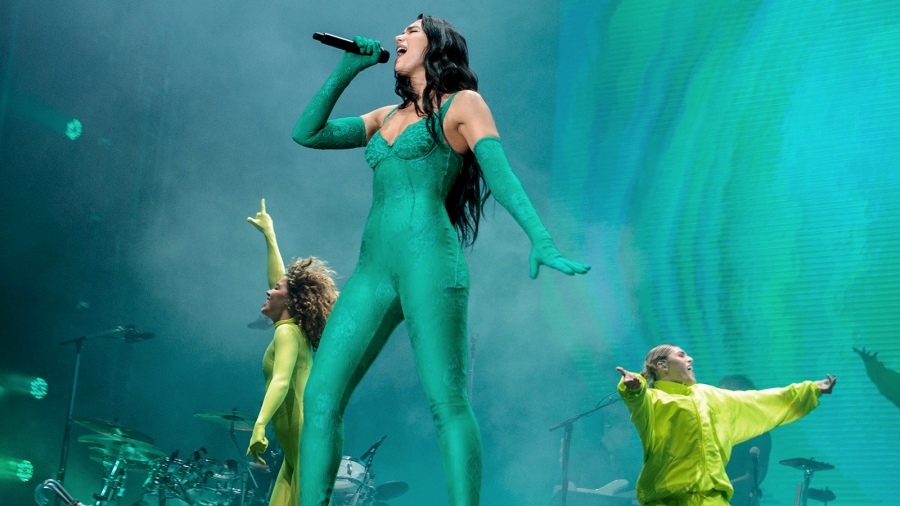 "Buenas noches, Buenos Aires. Aquí comienza la fiesta", dijo en castellano una Dua Lipa enfundada en un ajustado traje verde, uno de los tantos vestuarios que utilizó. En la siguiente hora y media, continuó una sucesión de canciones sin respiro, con apenas algún momento del cuerpo de baile en el centro de la escena, que ofició de descanso para la artista.