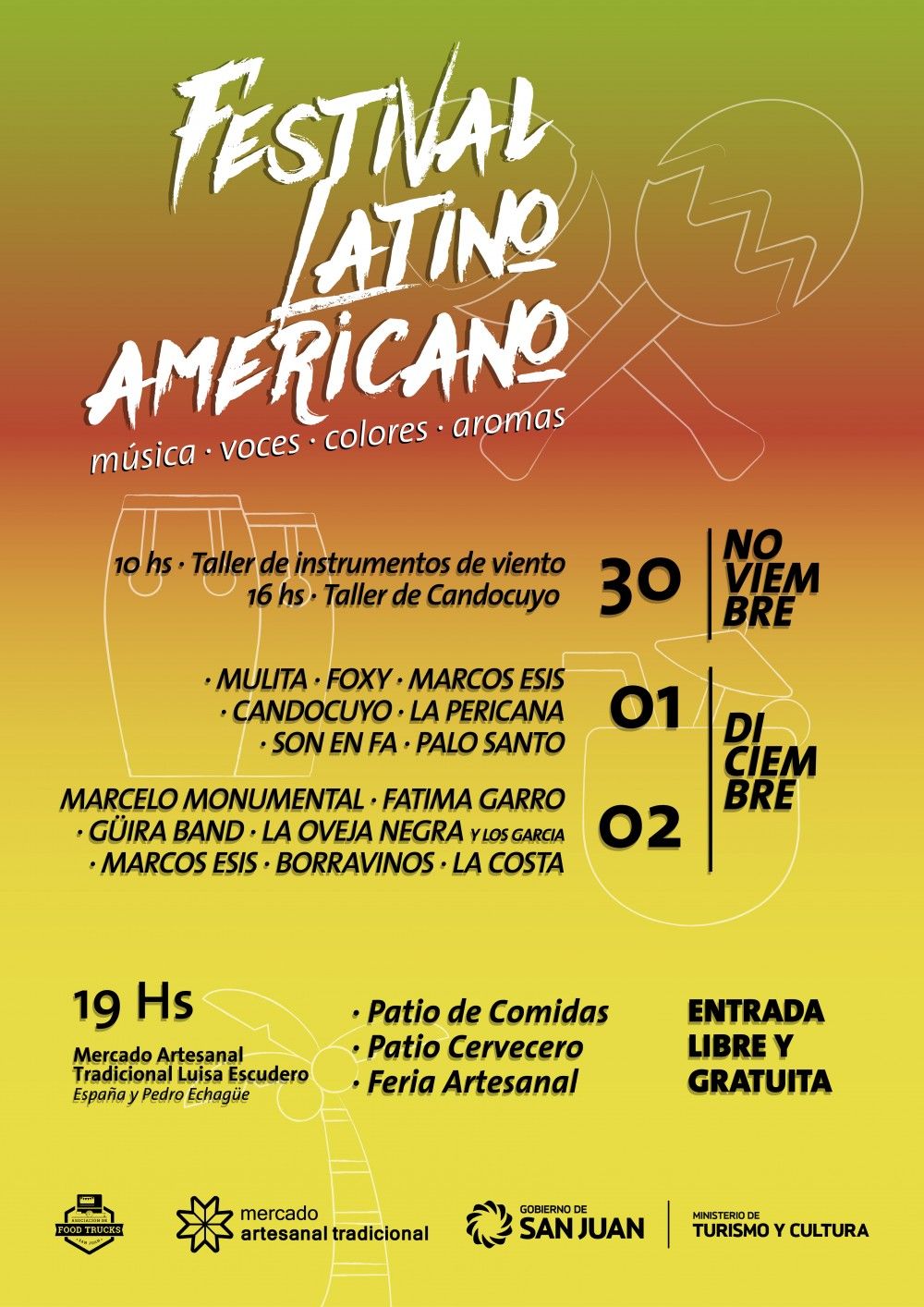 Con esta propuesta, el Ministerio de Turismo y Cultura dará comienzo a este encuentro el próximo jueves 30 de noviembre con talleres: uno de ensambles de instrumentos de viento que comenzará a las 10 (capacidad 30 personas); y el segundo estará a cargo de la Comparsa Cando Cuyo, a las 16 (sin límites de participantes).