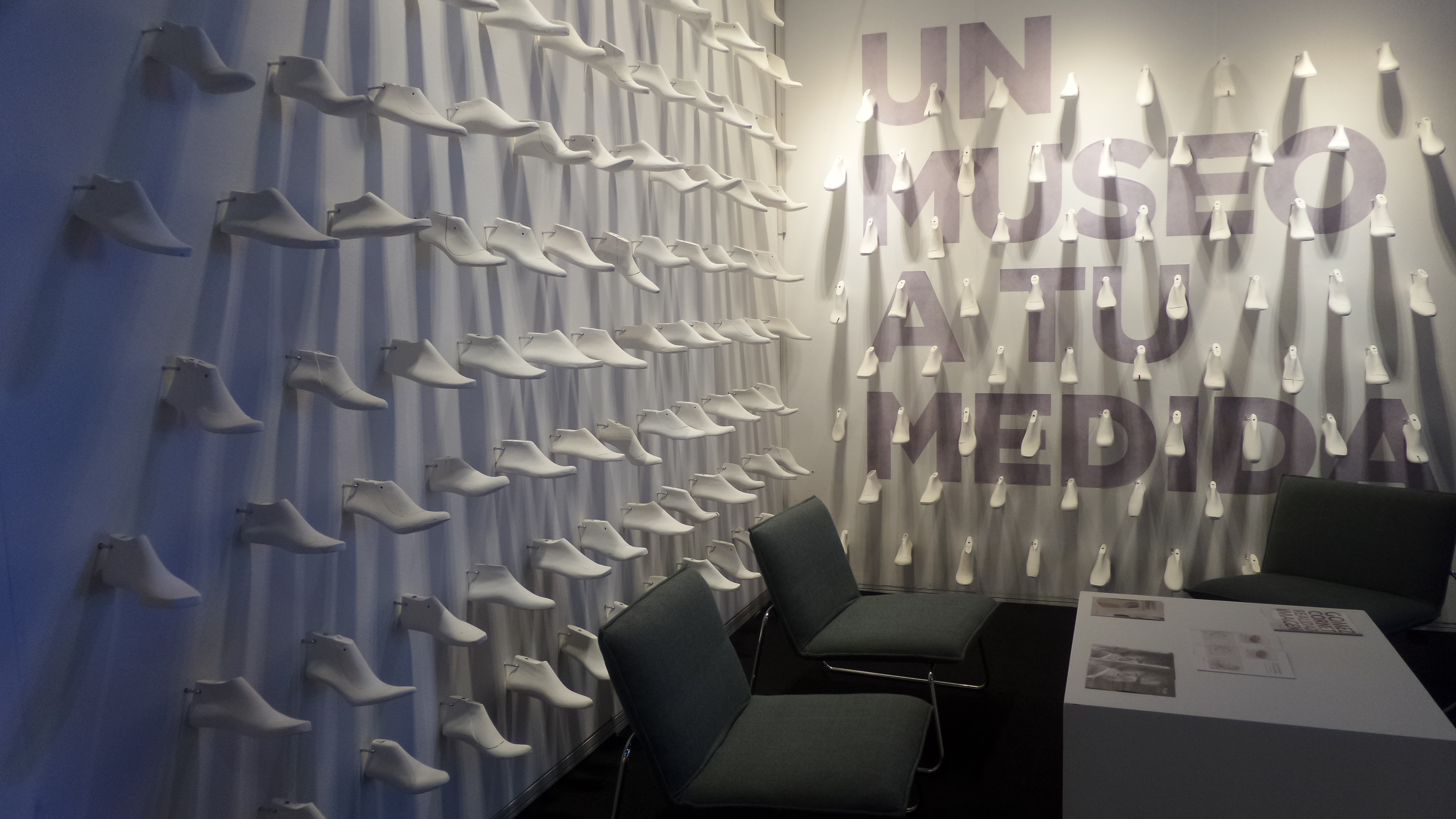 Este año, bajo el slogan "Un museo a tu medida", decidieron montar en el espacio sanjuanino una instalación que remitiera a uno de los objetivos de la institución, el de un museo destinado a los distintos tipos de públicos y por eso la idea de diversidad y pluralidad se quedó plasmada en la variedad de hormas de zapatos colgadas en las paredes del stand.