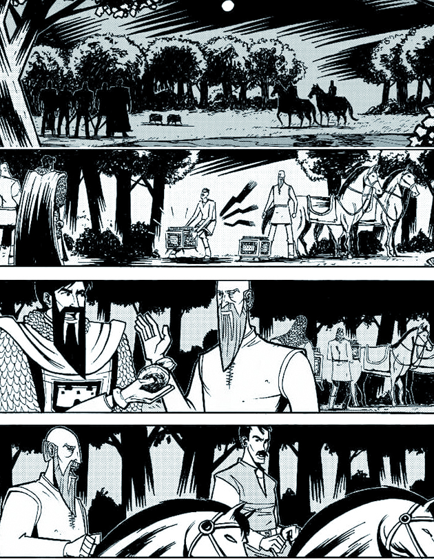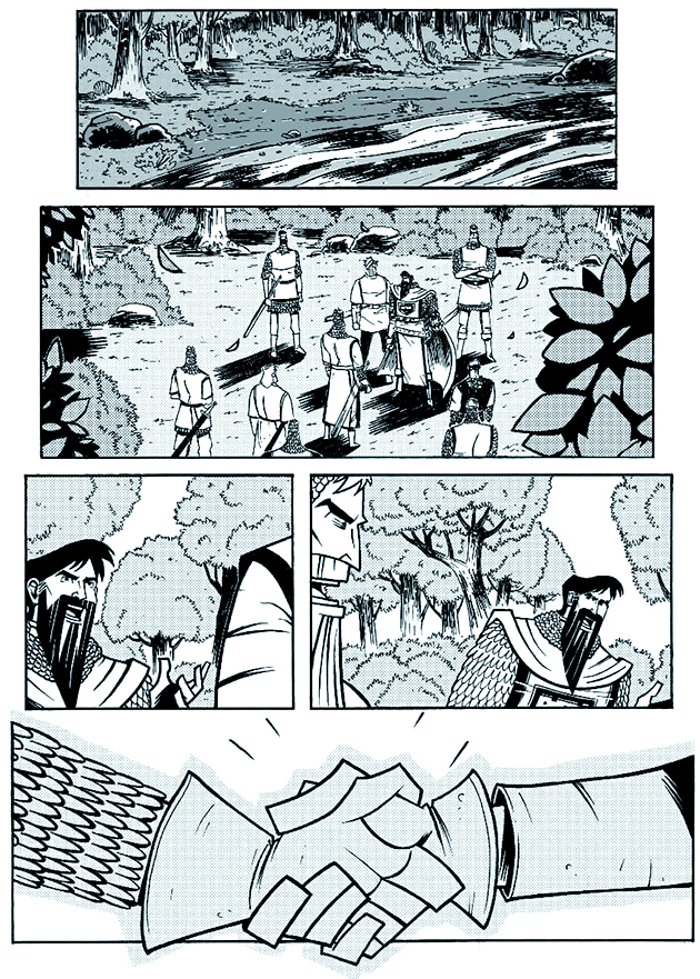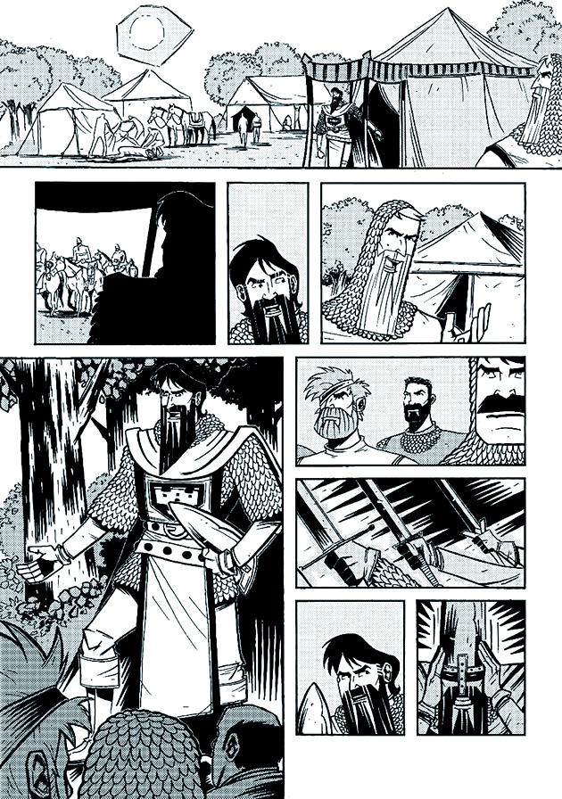 "Fue muy interesante trabajar en blanco, negro y grises. Alejandro es un guionista muy inteligente que entiende que el dibujante tiene la posibilidad de narrar ciertas cosas mostrándolas y no contándolas; entonces, me dio libertad para resolver cosas como agregar o sacar viñetas, cambiar o agregar una situación, junto a la visual de los personajes, la única más importante que fue probada fue la del Cid, porque para España es como un Highlander", comentó el nobel lápiz sobre la cocina de la versión de 65 páginas en la que destacó la óptica desde la cual se enfoca la fábula: el camino a la redención del protagonista ya convertido en héroe.