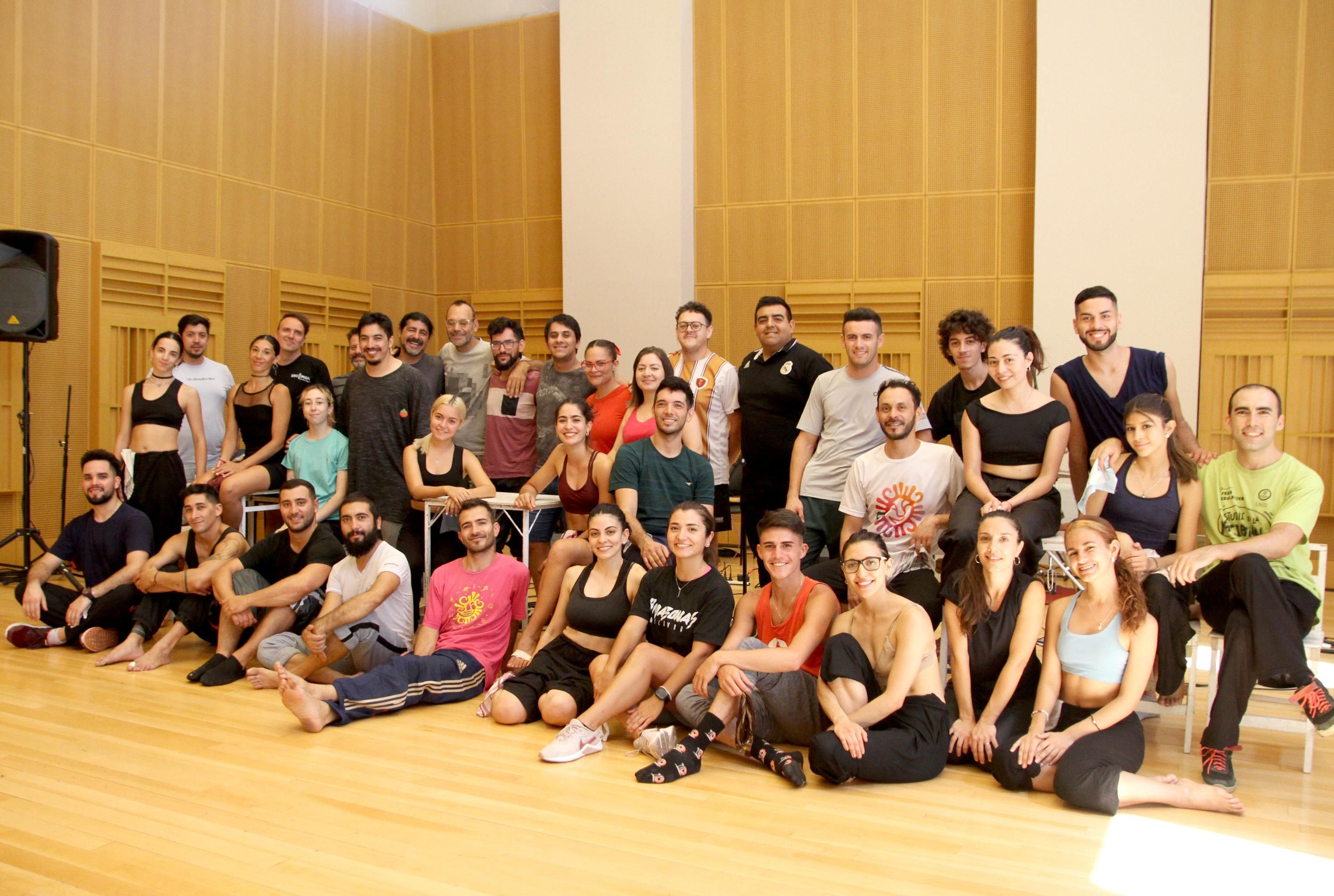 Equipo. La delegación reunida en el Teatro del Bicentenario, donde se realizan los ensayos generales de "1944, San Juan, provincia de eternidad’.