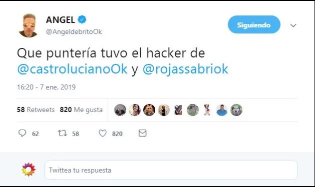 Con la noticia confirmada de la ruptura, esta declaración toma otro cariz y fue le propio Ángel de Brito el que posteó en Twitter un sugerente mensaje: “Qué puntería tuvo el hacker”.