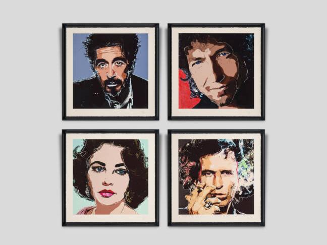 Las pinturas vendidas de Depp son en su mayoría retratos, desde su querido amigo Keith Richards, quien inspiró los gestos del infame capitán Jack Sparrow, hasta el músico Bob Dylan. Son en total cuatro personas que, según explicó el propio artista, lo han inspirado, lista que se completa con el actor Al Pacino y la actriz Elizabeth Taylor.