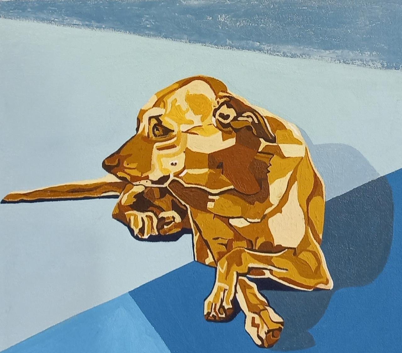 Tres retratos -uno de sus abuelos maternos, de 1×1 m trabajado al óleo, otro de su madre (es la primera vez que la pinta) de 60×80 cm y el último de su hermana mayor, de 70×80 cm- y una Serie, Perros de la calle, que abarca seis óleos de 30×40 cm y que se vincula con un dibujo de grafito sobre papel de 30×30 cm -que hace foco en la expresión de un niño que refleja la misma tristeza y abandono- conforman el cuerpo de 10 obras que expondrá en esta oportunidad.