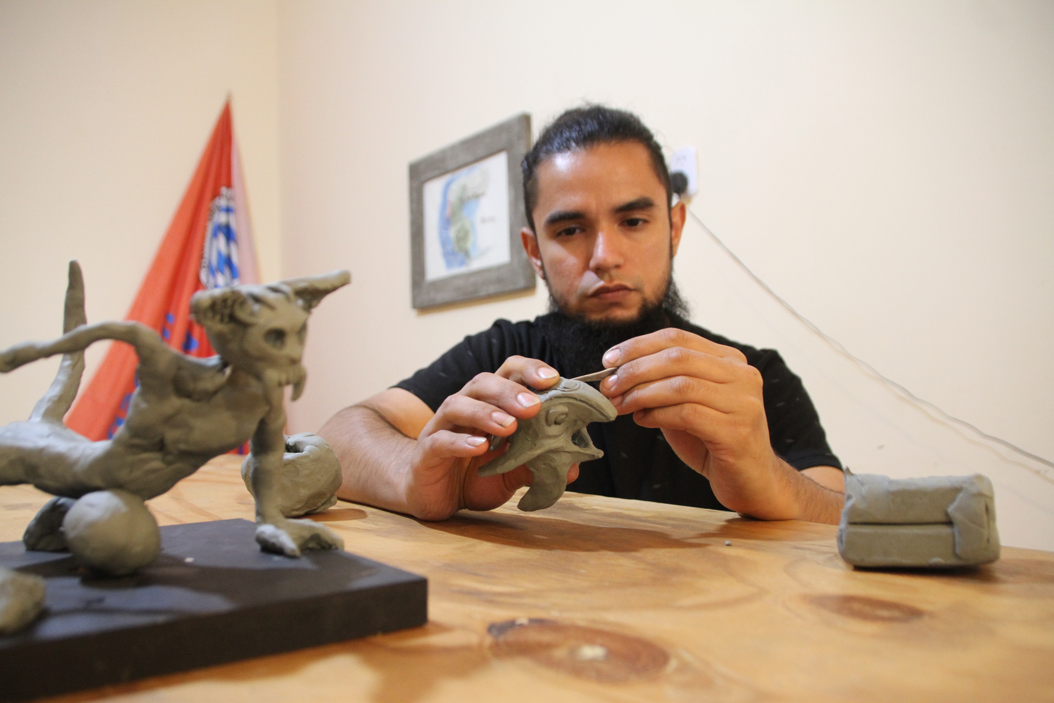 Ilustrador y escultor, formó parte de los creativos que desarrollaron la muestra Titanes de Ischigualasto del Museo de Ciencias Naturales de la UNSJ y también aportó sus habilidades para la serpiente enorme que se pudo apreciar en el espectáculo final de la Fiesta Nacional del Sol, recientemente presentada. Pero su especialidad es la creación de monstruos modelados y criaturas sobrenaturales más próximos a la ciencia ficción.