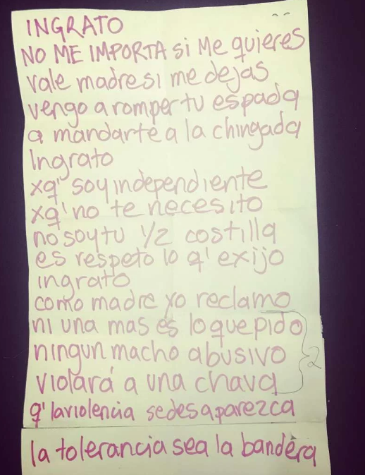 "Ingrato, como madre yo reclamo, ni una más es lo que pido, ningún macho abusivo violará a una chava", reclamó la intérprete de Florecita rockera, en relación a la violencia de género que en México cobra víctimas diariamente.
