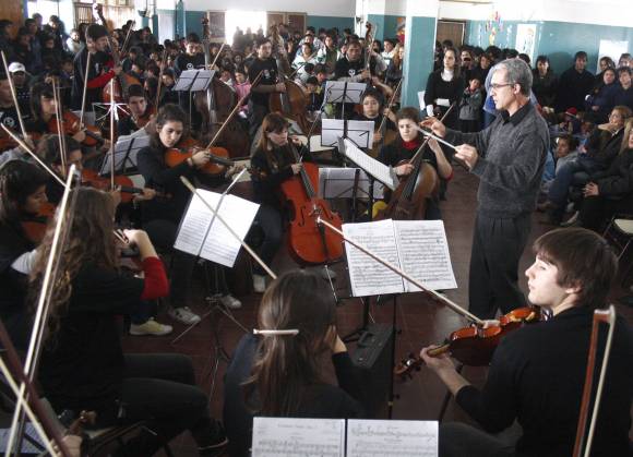 Todos atentos y con deseos de participar en cada una de las preguntas que formuló la coordinadora. Y luego, encantados con el concierto de música clásica, de esos que pocas veces tienen oportunidad de escuchar en su departamento. Ayer, los chicos de la Escuela Segundino Navarro de 25 de Mayo, fueron los primeros en recibir a la Orquesta Juvenil de la Escuela de Música de la UNSJ en el marco de un proyecto redactado entre la Universidad Nacional de San Juan, la Fundación Banco San Juan y el Ministerio de Educación.