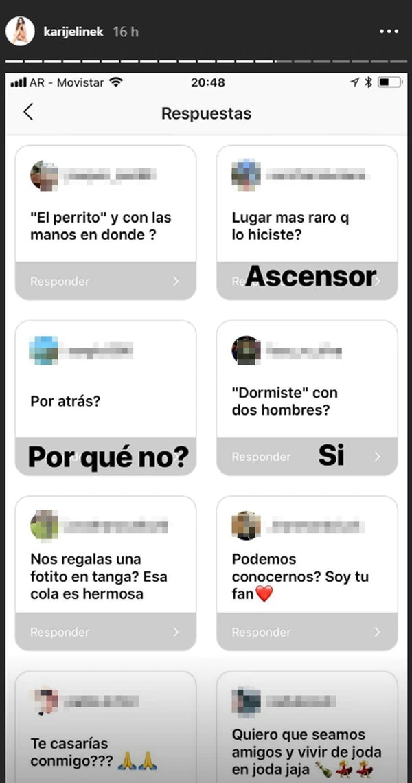 Karina Jelink no dejó nada a criterio de sus fanáticos y contó todo, en un cuestionario sexual muy caliente que sus seguidores le realizaron en Instagram.