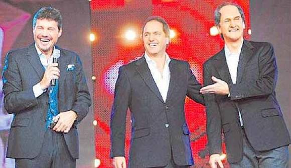 Sacando lustre a una fórmula que parece haber encontrado la vuelta de tuerca a la parodia política de Gran Cuñado, el lunes pasado Marcelo Tinelli recibió en Showmatch a Daniel Scioli, figura que hasta ahora va un paso adelante, al menos en lo que a materia de audiencia se refiere; ya que deparó 26.4 puntos de rating. El actual gobernador de Buenos Aires y candidato a diputado nacional por el kirchnerismo, fue el nuevo protagonista del Derecho a Réplica, el redituable segmento humorístico que ayer, al cierre de la edición, presentaba a Felipe Solá, candidato a diputado por Unión-Pro, y el lunes que viene tendrá a sus compañeros de lista Mauricio Macri y Gabriela Michetti.