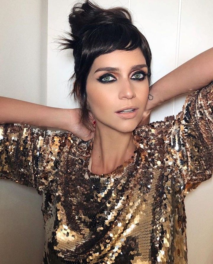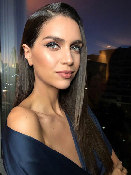 Su larga melena castaña es su marca personal, que modifica con peinados, postizos, ondas o lacios, pero el color no cambia. El nude es su estilo de makeup favorito, aunque ojos bien delineados y labios intensos le quedan de maravillas.
