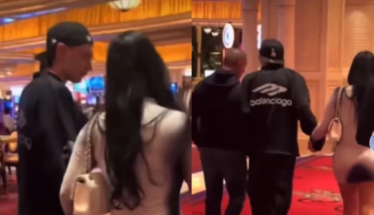 El escándalo comenzó cuando Peso Pluma fue visto en un casino de Las Vegas, caminando de la mano con una mujer desconocida, quien se mostró con un vestido minifalda, ceñido al cuerpo en color negro, con zapatos de tacos altos, una cartera blanca y una larga cabellera morena que le llegaba hasta la cintura. Casi de inmediato, a los pocos segundos estas imágenes estaban circulando por internet de modo que se volvieron virales rápidamente. Según se pudo apreciar en el video, el equipo de seguridad del músico intentaron evitar la grabación pero esto no pude concretarse. Enseguida se alertaron los seguidores de ambos artistas, e incluso la propia Nicki, quien luego contó que ella se había enterado igual que todos, en ese mismo momento.