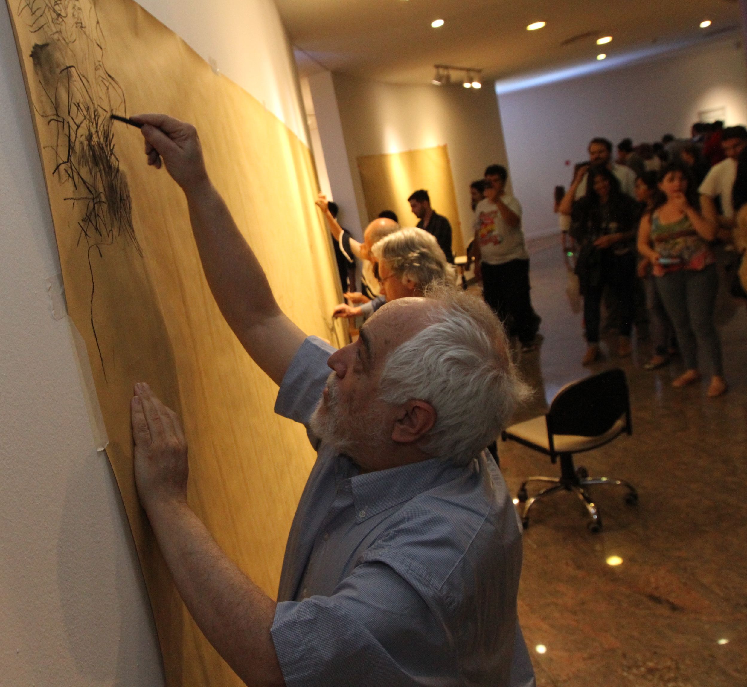 Eduardo Stupía. El destacado dibujante en el Franklin Rawson, durante la Noche del Dibujo 2018.