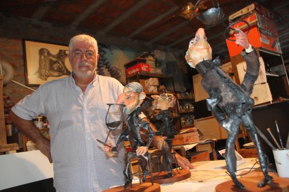 El reconocido artista plástico Hugo Vinzio Rosselot trabaja en una nueva serie de esculturas, que como suele hacer, están inspiradas en cosas bien sanjuaninas. Esta vez, lo convoca el vino. El vino y su relación con la vida cotidiana, una temática que ya abordó hace algunos años cuando editó el libro de viñetas Salú compadre y ahora un cierre con otros personajes en volumen.