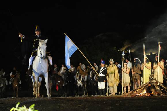 Lejos de las luces de los festejos, entre las lomas, los criollos se dieron cita a las 21.30. La distribución de las ropas, sables y lanzas; la vestimenta de los actores, ahí mismo, en las sombras, y la reunión de los nobles corceles todo fue consensuado en ese camarín a la luz de las estrellas.
