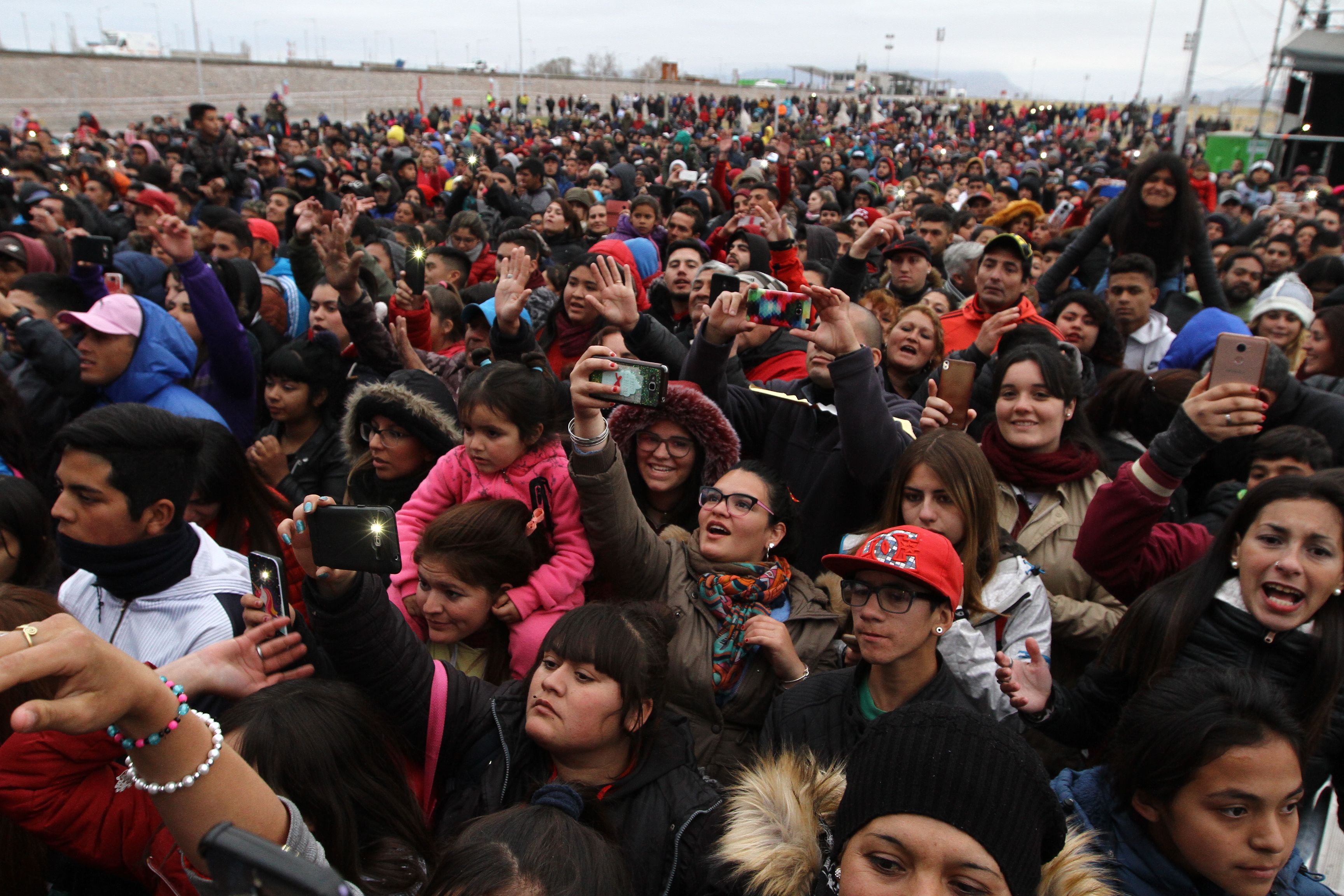 "El que no levanta las manos es un chetooo…", así fue la arenga de Pablo Lescano al comenzar el show más esperado por los sanjuaninos que asistieron al Costanera Complejo Ferial durante la tarde de ayer. El líder de Damas Gratis imprimió el ritmo alegre y festivo que caracteriza a la cumbia villera ante un auditorio de 10 mil espectadores -registro suministrado a este medio por uno de los encargados de la seguridad del espectáculo, Hugo Castro- convocados al evento "Apostá por la vida". Los primeros acordes con el típico sonido de sintetizador de su keytar comenzaron a sonar bien fuerte por los amplificadores, eso sumado al grito de las fans fue la señal para el arranque de la fiesta. Lescano puso toda la carne al asador con los mejores hits de DG. El público estuvo aguardando por la presencia del cantante en el escenario varias horas, soportó un clima duro y muy frío (al mediodía de ayer el SMN marcaba una temperatura máxima de 7 ºC) en el predio. A pesar de los retrasos y modificaciones en la programación artística, porque estaba previsto que el número principal actuara a las 16 y terminó concretándose cerca de las 19, la paciencia primó y los fans hicieron el aguante escuchando a los números soporte de Pijama Party, King of Banana, el DJ Ismael Sosa y la solista Johana Rodríguez. Al momento de salir Lescano a tomar el micrófono, la multitud estalló de emociones, acompañó coreando las canciones y bailando con los celulares encendidos al mismo tiempo sin parar en cada entrega del ídolo cumbiero. Papelitos picados lanzados al aire, Lescano pidiendo palmas y que salten al son de "Yo tengo una piedra", fue una de las postales más memorables demostrando que en la cumbia, también existía el "pogo" en la popular. Ese calor de admiración y afecto de los fans le llegó directamente al protagonista que, a pesar de que también sufría el aire helado en el escenario -por momentos lo sufría en sus manos- lo animó para subir la apuesta a medida que avanzaba el encuentro. Hasta que llegó a tocar el clásico "Laura se te ve la tanga" y allí se desató toda la euforia de los espectadores al cierre de esta edición.