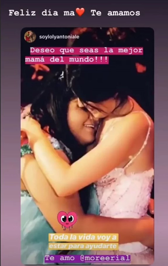 Usuaria activa en las redes sociales, Morena intercambió fuertes y emotivos mensajes con Mariana “Loly” Antoniale, quien supo ser pareja de su padre. “¡¡¡Deseo que seas la mejor mamá del mundo!!!”, le escribió la modelo, en una foto que compartió en sus historias de Instagram.