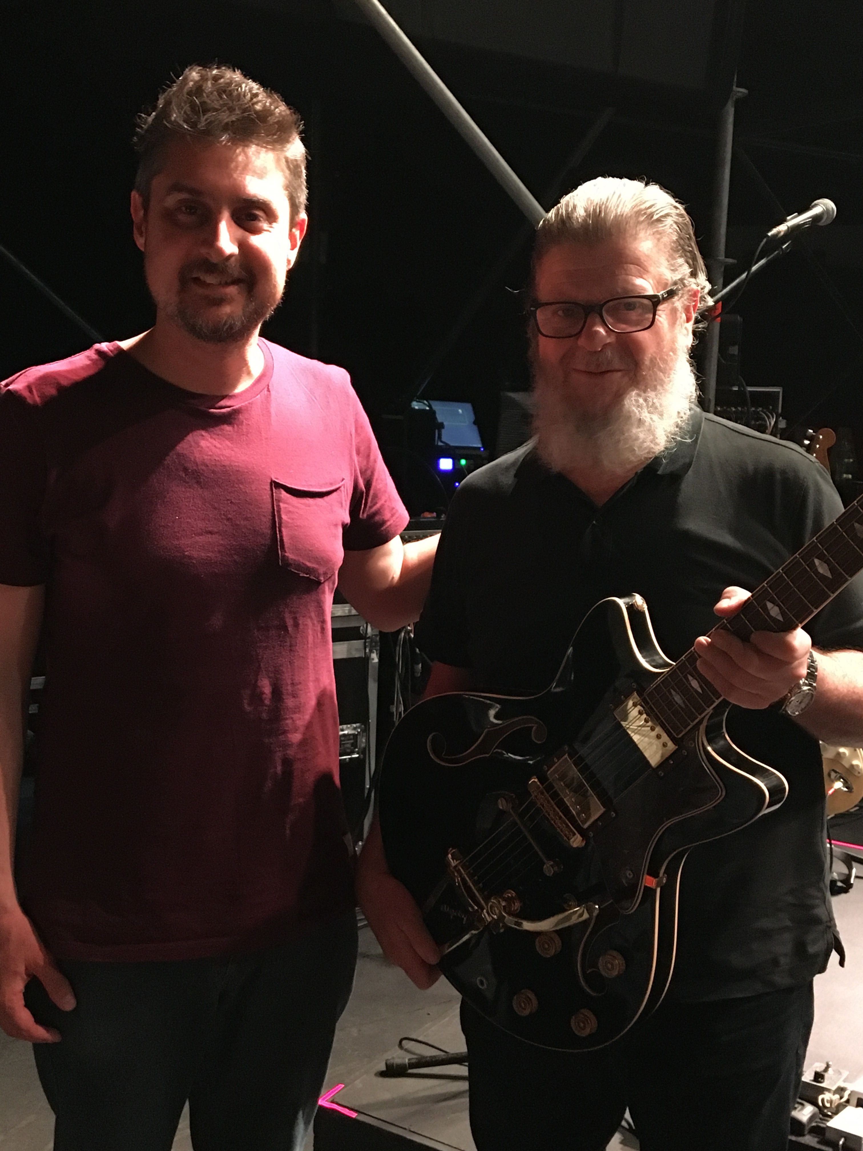 "No lo podía creer, verlo con mis guitarras fue bastante emocionante. Igual me pasa, que si estoy con alguien a quien le gustan las guitarras, te ponés a hablar de cosas técnicas y ahí como que se olvida quién es cada uno. Uno habla en el idioma de las guitarras y congeniamos en ese sentido’ aseguró el sanjuanino sobre el encuentro con el dos veces ganador del Oscar, un Globo de oro, dos Bafta, 15 Latin Grammy y dos Grammy.