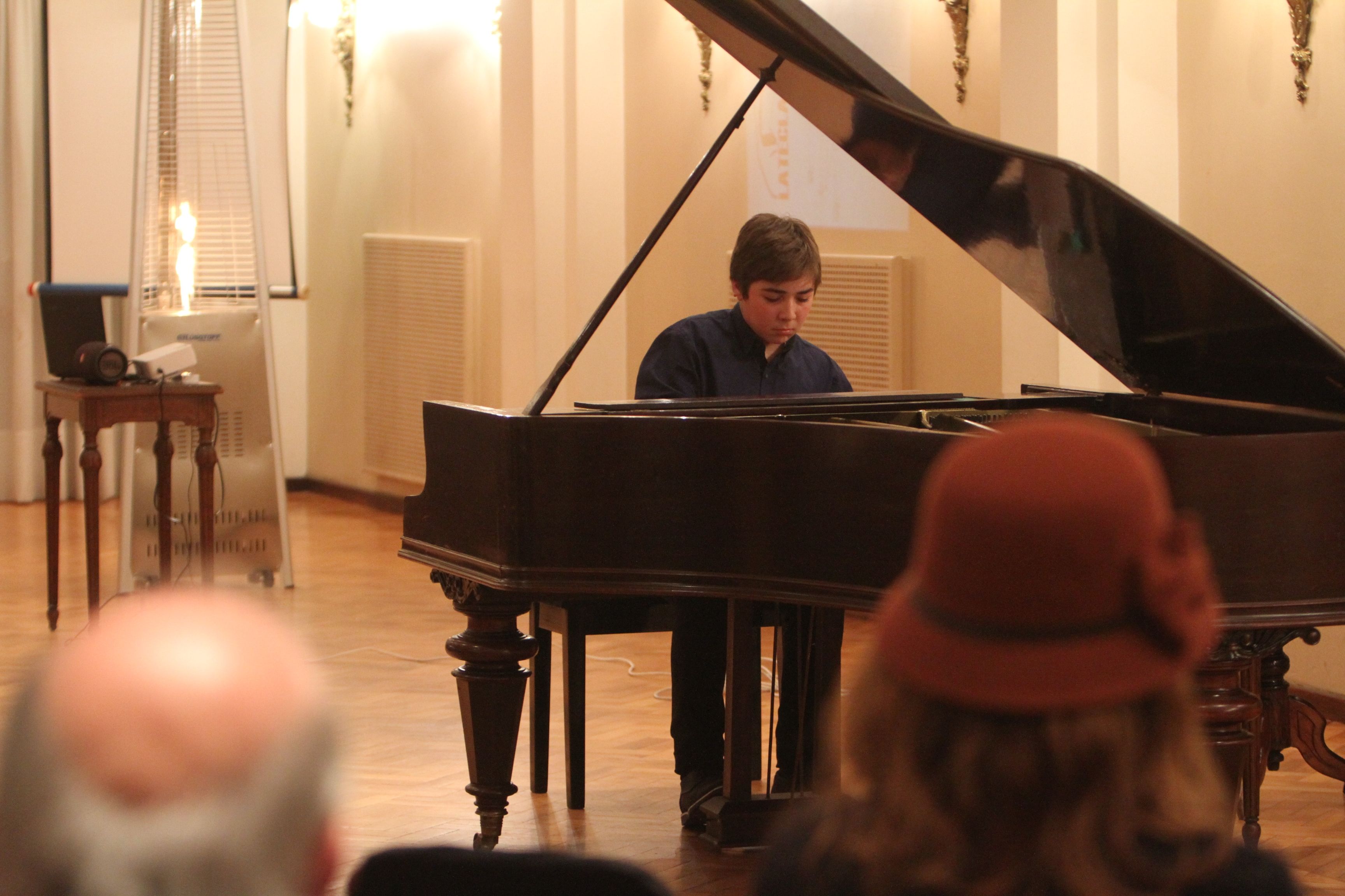 Fue una noche cargada de jóvenes talentos, porque en la primera parte de la velada tocaron Walter Vilches con Sifonia Nº 15 de Bach y Nocturno en Mi menor de Chopin; seguido por Jorge Rodríguez D’Anna con dos obras de Claude Debussy; con el mismo compositor comenzó Lizell Claros Arandia, que luego interpretó Chau París de Astor Piazzolla y Rosa, de Simeon Roncal; Cristian José Peralta ofreció también de Debussy, Preludio Nº 4 y Tocatta de Antonio Tauriello.
